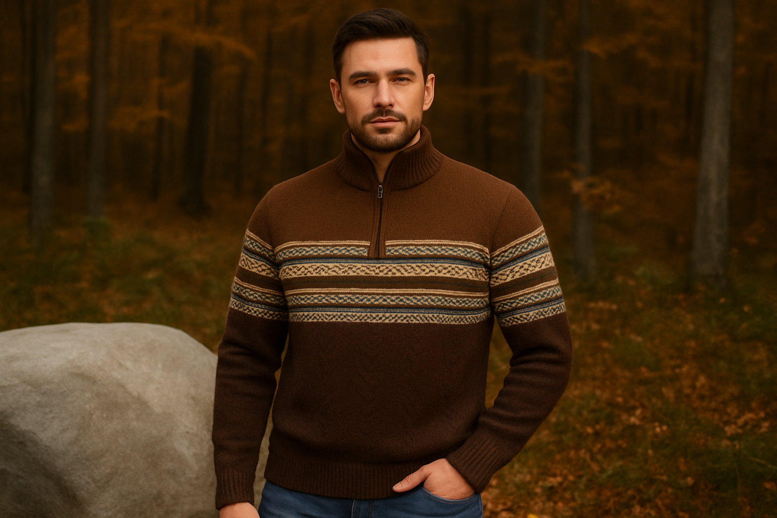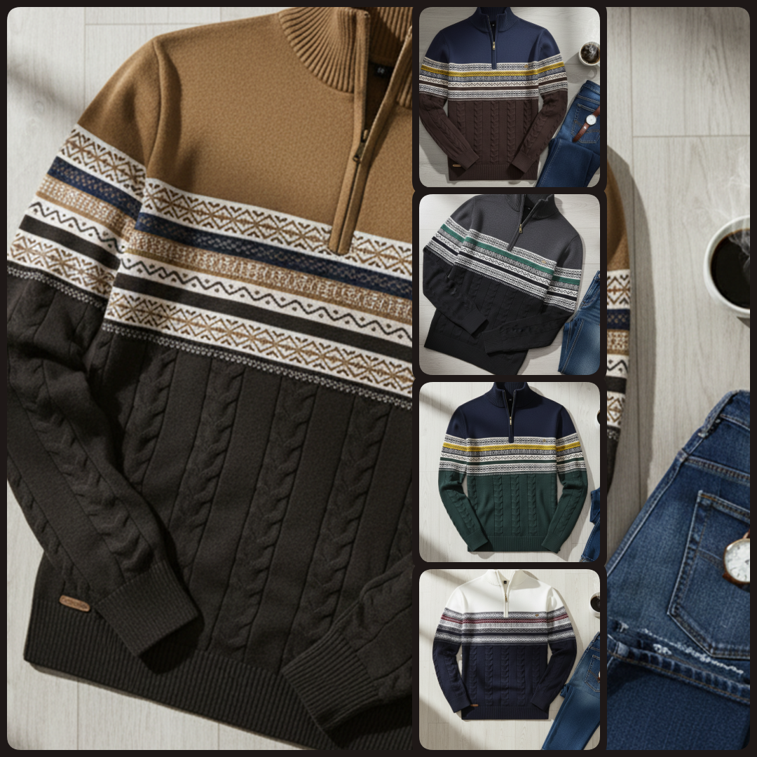 Chaque pull mêle des motifs intemporels d'inspiration nordique et aztèque à des coupes contemporaines, offrant un équilibre entre tradition et style moderne.